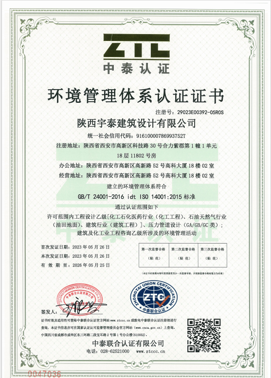 环境管理体系认证证书